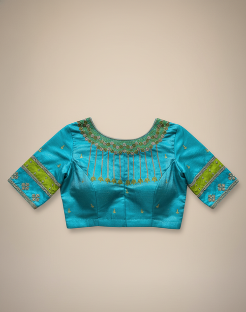 Teal Saree V Neck Blouse -